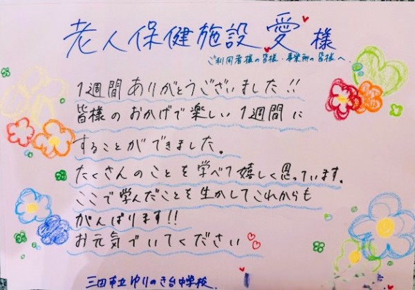 ご利用者様から可愛がられ、清々しい笑顔で「愛」を飛び立っていきました