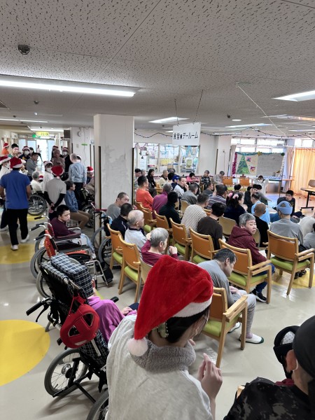 こぶしの園では年末恒例、クリスマス会を実施しました。1年間の想い出VTRやボランティアさんの読み聞かせ、係職員のハンドベルなど内容盛りだくさん。最後は園長サンタ🎅より利用者さん全員にプレゼントがありました。