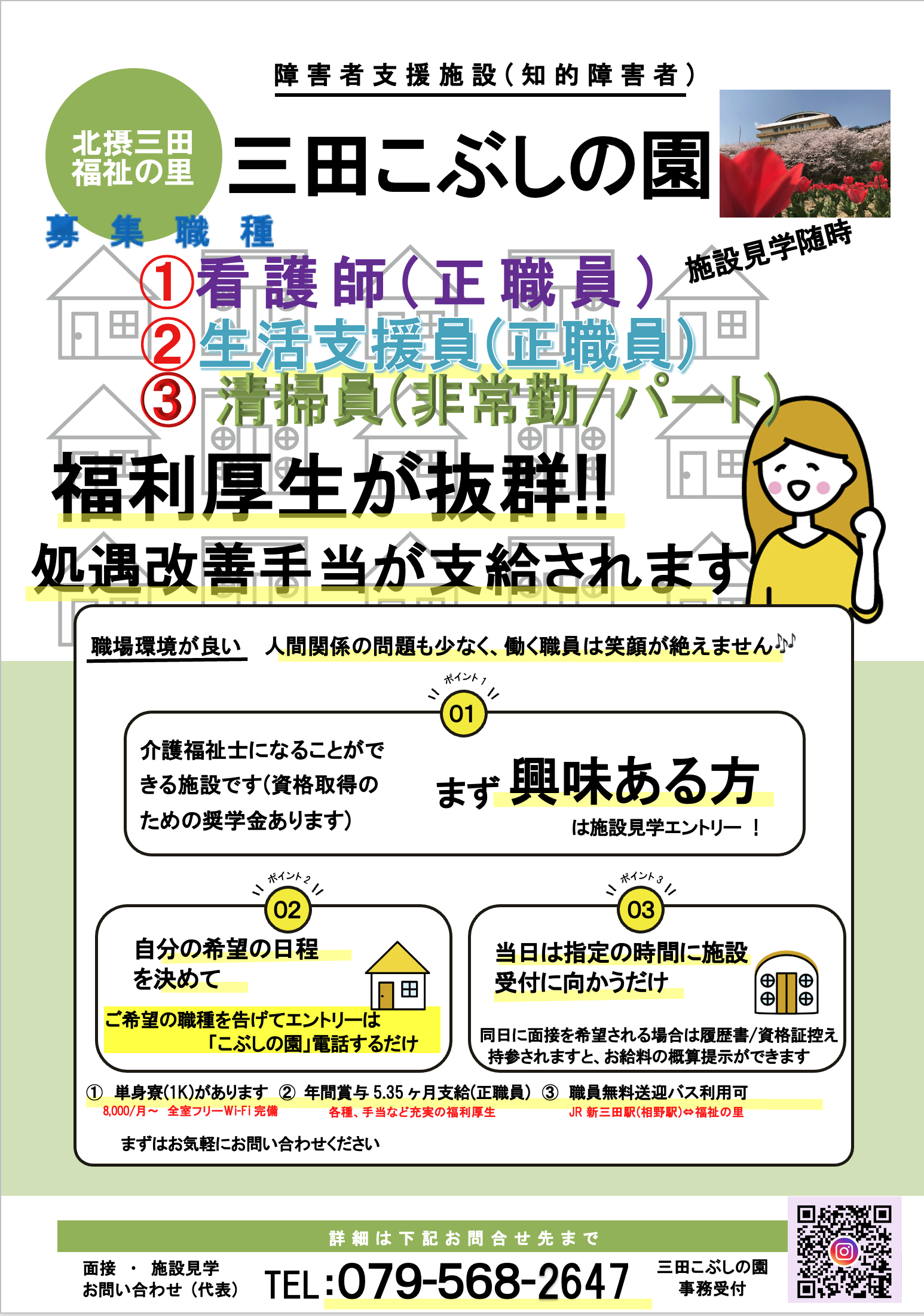 職員募集中 看護師(正職員)/生活支援員(正職員)/清掃員(非常勤)