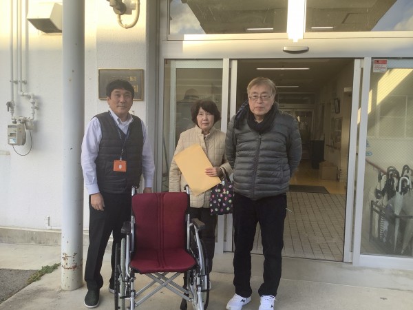 12月26日に三田市社会福祉協議会を通して、井堀敏之様より車椅子を寄贈していただきました。利用者さんに大切に使わせていただきます。ありがとうございました。